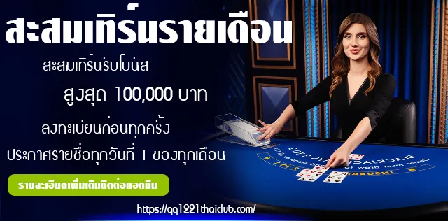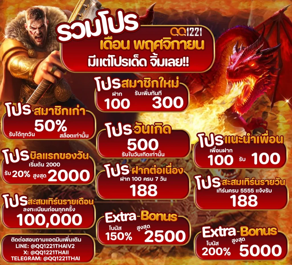 QQ1221THAI จัดโปรสมาชิกใหม่ ฝาก 100 รับเพิ่มทันที 300 บาท เมื่อทำรายการฝากก่อน 100++ รวมเป็น 400 บาท เทิร์น 15x ถอนได้ 1000 บาท ***เล่นสล็อตเท่านั้น **ห้ามซื้อฟรีสปิน